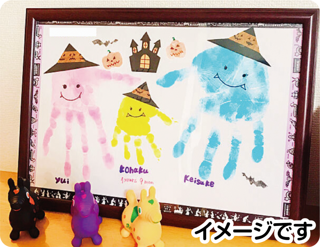 好きなシールを貼ったり絵や文字を書いたりして世界にひとつだけの「おばけ手形アート」が完成!お子様の成長記録やご家族の記念にもなる手形体験!フレームもお付けしますので是非お部屋に飾ってみてはいかがでしょうか?